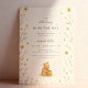 Add a sweet and cosy touch to your baby celebration with this adorable honey bear invitation background. Featuring a soft watercolor illustration of a baby bear holding a honey pot, surrounded by yellow wildflowers and buzzing bees. This gentle and neutral design is ideal for baby showers, first birthday invites, baby milestone posters, or nursery decor.