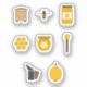 A set of stickers for beekeeper or lovers of bee. It includes beehive, bee, honey pot, bee smoker and honey spoon.