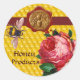 Colourful ,elegant floral apiary design with roses and red wax seal with backside of an ancient money from Mileto 415-394 a.C. Classy design easily customisable for your business.