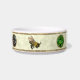 This is a heavy, durable bowl decorated with Tibbies of many colors, the perfect size for hungry/thirsty Tibs. The design is interesting and printing clear.