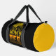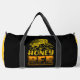 This striking black and yellow duffle bag features a detailed illustration of a honeybee, set against a backdrop of honeycomb patterns. The bold text "HONEY BEE" proudly highlights this essential insect. Perfect for beekeeping enthusiasts, nature lovers, or anyone who appreciates the vital role bees play in our ecosystem. Edit colour of the bag caps and body in the Design tool to your favored colours.