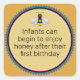 Infant warning stickers for honey jars featuring a simple honey bee icon and a customisable warning: "Infants can begin to enjoy honey after their first birthday". Combine with our wrap around labels over the top lid of honey jars to create a tamper-proof security seal.