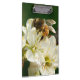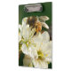 Keep your notes organized with this sturdy clipboard featuring an original macro photograph of a honey bee on white plum blossoms. This professional nature photography captures the soft textures of spring. Perfect for beekeepers, gardeners, naturalists, and botanists for outdoor field notes.