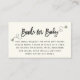 Elegant signature script "Books for Baby", baby shower book request card. Cards feature, cute watercolor honey bees and golden honeycomb pattern backing.