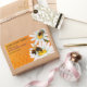 Honey bees pollinate white daisy flowers over a golden orange honeycomb pattern, personalised to create jar labels for honey, beeswax, cosmetics and any kind of product. Find the matching cut-comb honey box labels, business cards and other beekeeper business essentials in the collection.
