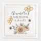 These honey inspired party napkins feature a bees and flowers theme. Sunflowers and a floral bouquet is pictured at the bottom with two little bees buzzing around them. Illustrated honeycomb accents the text area in the centre. A sample name is printed above an event, "Baby Shower" followed by the date of the celebration. You can personalise the napkins to include your own party information or other custom text. A honey coloured border frames the napkin."