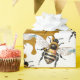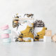 illustrated honey bees hover over honey gold brush splashes for a lively, artful pattern that feels like honey drips. The illustrated details and warm yellow and gold tones make it a charming choice for birthdays, garden parties, housewarmings, or beekeeper gifts. An easy way to wrap anything in sunny, nature inspired style.