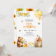 A sweet Birthday theme with bees, baby bear, a hive, little birds and yellow flowers on the front and lovely sunflowers on the back! You can personalise this invitation with your own details.