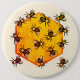 Honey bees with orange yellow hexagon drawing art 6 cm round badge