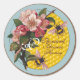 HONEY BEES WITH WILD ROSES MONOGRAM CLASSIC ROUND STICKER