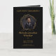 Elegant black memorial bifold program with warm Honey‑Brown text, one photo, obituary, order of service, scripture, and poem.