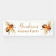 Brand your honey business name with this large 8 foot long banner, with golden brown illustrations of honey bees. Personalise the text for your bee keeping business. Great for use in front of your shop, farmers market and trade shows.