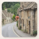Souvenir coaster with the old honey coloured cottages in Cotswold stone with slates on the roof in the small, quaint, fairy tale village of Castle Combe in the Cotswolds, England, UK.