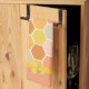 Colourful kitchen towel done in a stylish honey comb pattern. Cute graphics of yellow bumble bees decorate both top and bottom edges of the towel. Customise to add your own text.