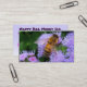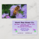 This business card is an advertisement for honey. It features a golden striped honeybee busily pollinating a purple ageratum blossom. The lovely lilac flowers and luminous green foliage add to the gorgeous, sunny summer feeling. All text can be customised to fit your personal business needs.