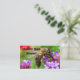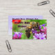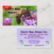 This business card is an advertisement for honey. It features a golden striped honeybee busily pollinating a purple verbena bonariensis blossom. The pollen is visible in the sac on his leg. A colourful red poppy flower and luminous green foliage add to the gorgeous, sunny summer feeling. All text can be customised to fit your personal business needs.