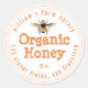 Modern and simple honey jar labels with the text organic honey and your business name and website or address in orange stylish script typography on a white background, features a vintage bee image. Simply add your apiary name, the product name and the weight to the label. Exclusively designed for beekeepers by Happy Dolphin Studio. If you need any help or matching products, please contact us through our store chat!