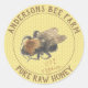 NewParkLane - Honey Jar Sticker Label, with a vintage image of a bumblebee, originally from an early 17th century Dutch painting by Johannes Bronkhorst, against a yellow background with a honeycomb pattern.