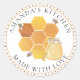 Honey jar labels with honeycomb, bees, and the words: made with love. Whimsical watercolor yellow gold. Stickers for any honey products. Personalise with your own business name or honey product name.