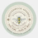 Label your own honey, candles, beeswax and more with this vintage black and yellow honeybee sticker with sage border. Personalise with your apiary business name at the top and add in your location or address below. You can edit the descriptive text to match your product or keep it general to match with anything your bees might create. Two additional vintage bees act as bullet points in this design.