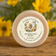 A label for soap and/or cosmetic products featuring a honeybee surrounded by flowers on a faux parchment paper style background..