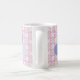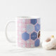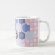 What can be better than to sip your morning coffee with your favourite couple's mug? With a honeycomb pattern of blue-toned shapes that carry editable text and photos on an abstract pink and blue pattern. Write your initials, date of marriage, or the beginning of your relationship, and add your photos. This is the perfect wedding gift or anniversary gift for loving couples.