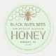 Chiseled metallic honeycomb background with stylised bee and dashed border. Gold text on a subtle pale green background.