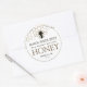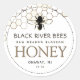 Chiseled metallic honeycomb background with stylized bee and dashed border. Black and Brown text on white background.