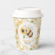 This honeycomb baby shower paper cup features a cute bee with a sunflower surrounded by floral elements and bees. The warm and playful design makes it a perfect personalized party item.
