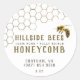 Chiseled metallic honeycomb background with realistic bee hovering over title makes this label stand out. Add your product net weight.