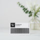 A business card template with a long rectangular image/photo area with a close-up photo of typewriter type leavers which alternatively can be replaced with your own image or photo and with a panel in the top left for a monogram or logo which includes a "W" as an example monogram which can also be changed. The design is balanced with four small rectangular text based symbols on the right created with the Semaphore symbol font. The white area is also a frame mask making it easy to position and resize a photo underneath. Company name and business type/quote on the front with name and contact details on the back in white on a contrasting dark grey background. Can be adapted to a variety of businesses and other uses.