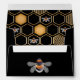 This contemporary design features a geometric gold colour beehive pattern, bumblebees, and a black colour background.