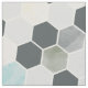 honeycomb pattern fabric featuring an elegant modern colour scheme with watercolor pastels and a dominant serene grey.