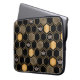 This contemporary design features a geometric gold colour beehive pattern, bumblebees, and a black colour background.
