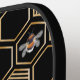 This contemporary design features a geometric gold colour beehive pattern, bumblebees, and a black colour background.