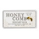 Eye-catching label for honeycomb in plastic honeycomb container. "Honeycomb" printed in brown with an old-fashioned market font and a darker drop shadow to give it a slightly vintage enameled look. Personalise with your apiary name, address and product net weight. Yellow and gold iridescent honeycomb design in background, complete with its own realistic honeybee. Vintage border in a dainty diamond pattern.