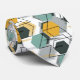 Honeycombs. Abstract geometric pattern. Grey, mustard, turquoise figures on white.