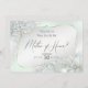 BRIDAL PARTY PROPOSAL INVITATION | Shimmery Honeydew green luminescent background with luminous rose leaves , eucalyptus leaves, baby's breath and sparkly twinkles. Reverse is a complimentary coordinated colour. This design looks especially nice on the Pearl Shimmer paper choice. Customise text, font style, colour and size. We created this template is to make it easy for you to personalise with your own information. This is part of a complete Wedding Stationery Suite with matching wedding, baby shower and other event stationery. Original Artwork © by WhimsicalArtwork™.