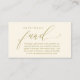 Celebrate the beginning of your journey together with our elegantly crafted "fund" wedding invitation enclosed card in yellow gold theme. Featuring a sophisticated blend of modern script and romantic allure, each card is meticulously designed to convey the essence of your special day. Perfectly suited for couples seeking a unique way to share their honeymoon dreams, this card invites your loved ones to contribute towards unforgettable experiences. Honeymoon wish, Wishing well, Honeymoon Fund, Cash, A note on gifts.
