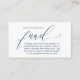 Celebrate the beginning of your journey together with our elegantly crafted "fund" wedding invitation enclosed card in navy blue theme. Featuring a sophisticated blend of modern script and romantic allure, each card is meticulously designed to convey the essence of your special day. Perfectly suited for couples seeking a unique way to share their honeymoon dreams, this card invites your loved ones to contribute towards unforgettable experiences. Honeymoon wish, Wishing well, Honeymoon Fund, Cash, A note on gifts.