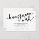 Celebrate the beginning of your journey together with our elegantly rustic modern black and white theme, crafted "honeymoon wish" wedding invitation enclosed card. Featuring a sophisticated blend of modern script and romantic allure, each card is meticulously designed to convey the essence of your special day. Perfectly suited for couples seeking a unique way to share their honeymoon dreams, this card invites your loved ones to contribute towards unforgettable experiences. Whether nestled in a luxurious envelope or presented alongside your wedding invitations, our card adds a touch of enchantment to your celebration, promising cherished memories that last a lifetime. Designed by TeeshaDerrick.