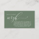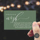 Celebrate the beginning of your journey together with our elegantly crafted "wish" wedding invitation enclosed card in sage green theme. Featuring a sophisticated blend of modern script and romantic allure, each card is meticulously designed to convey the essence of your special day. Perfectly suited for couples seeking a unique way to share their honeymoon dreams, this card invites your loved ones to contribute towards unforgettable experiences. Honeymoon wish, Wishing well, Honeymoon Fund, Cash, A note on gifts.