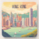 This coaster features a serene view of Hong Kong skyline with sailboats in front and high-rises on the back.