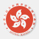 The emblem features the same design elements as the regional Flag of Hong Kong in a circular setting. The outer white ring is shown with the caption of the official name of the territory in Traditional Chinese and the English short form, "Hong Kong".