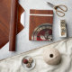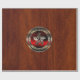 A Hong Kong seal orchid flower symbol chrome like ruby fire inlay on a mahogany style wood grain print background offered on this fine custom gift to make for yourself or for someone special on your list.