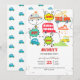 Honk beep vroom happy vehicles boy birthday invitation