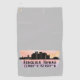 Golf towel features Honolulu Hawaii city skyline silhouette with watercolor splash and latitude & longitude map coordinates on light grey background.