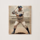 Commemorative artwork of a baseball player in the style of a vintage trading card. It was created in DreamUp and upscaled in Leonardo.ai.