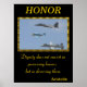 Set against a rugged military backdrop, a powerful scene unfolds, symbolising resilience and fortitude. At the top, "Honour" is elegantly inscribed in bold yellow cursive, radiating importance and dignity. The imagery captures the unbreakable strength of military forces, evoking courage and determination. Below, Aristotle’s timeless quote — "Dignity does not consist in possessing honours, but in deserving them" — is displayed in a readable serif font, placed above his name. This composition reflects the enduring wisdom and strength that define the military’s spirit.