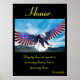 A majestic bald eagle, with a sharp beak and piercing gaze, stands boldly against a deep black backdrop. A dynamic American flag waves behind it, its vibrant colours adding a sense of motion and vitality. The word "Honour" crowns the composition in elegant yellow cursive, symbolising respect and dignity. Aristotle’s timeless quote — "Dignity does not consist in possessing honours, but in deserving them" — is thoughtfully placed below, enhancing the message of wisdom. This striking design celebrates strength, patriotism, and a profound connection to philosophical ideas, offering a visually compelling tribute to noble values.